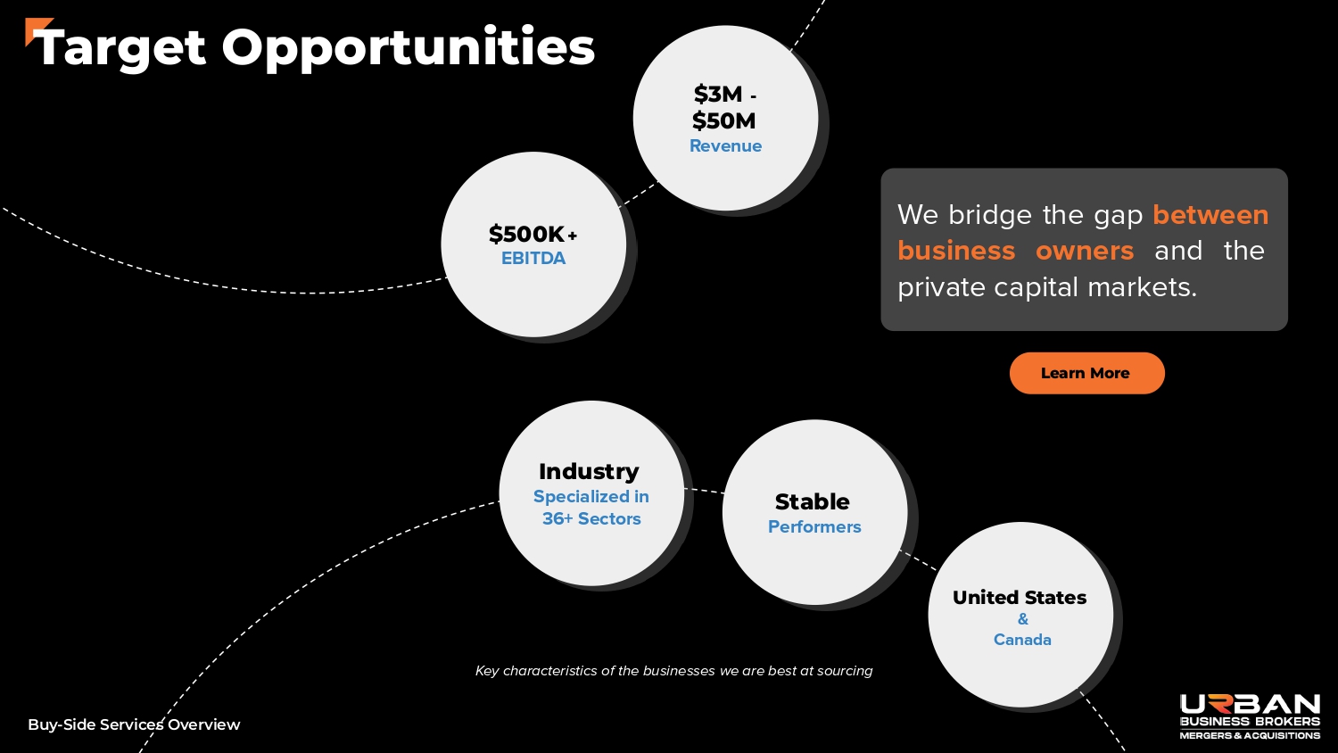 Our goal to introduce you to 3 - 5 owners who are interested in selling.